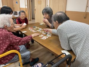 昼食の後はのんびりとした時間を過ごされますが、この日はカルタ大会で白熱!