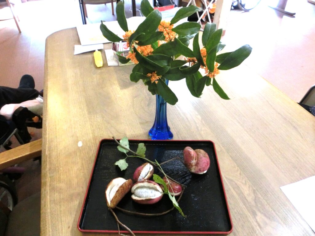 本日は、〇〇様の京都にお住いの妹様から、あけびとキンモクセイが届きました!