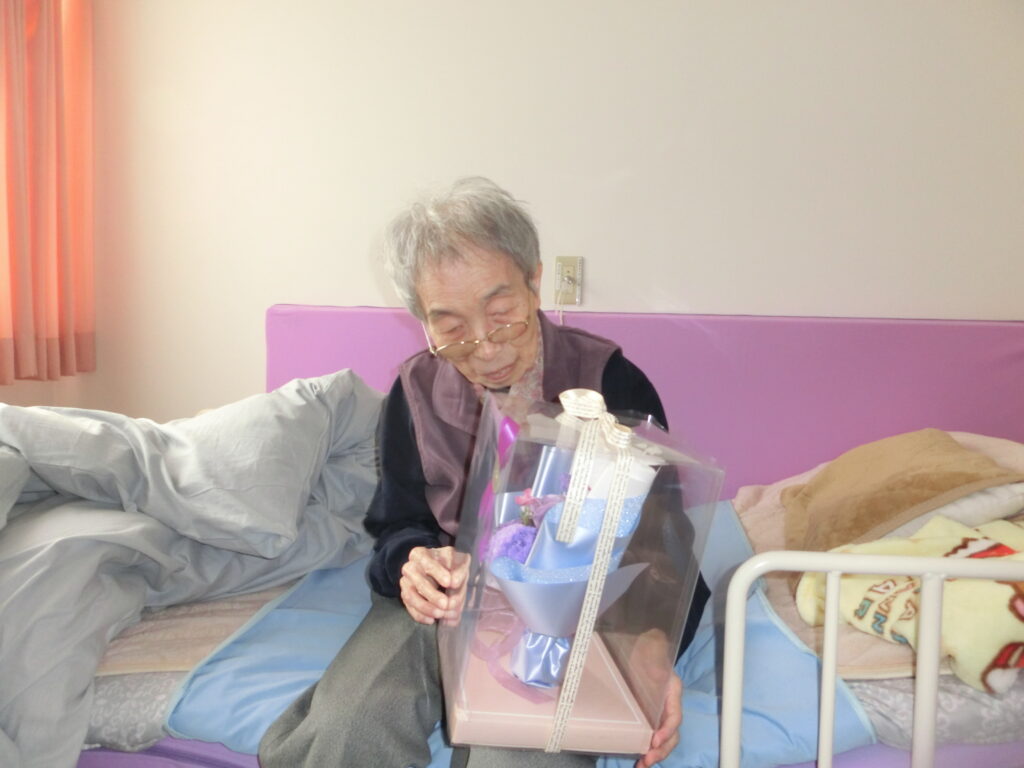本日は、〇〇様のお誕生日で、ご家族様から誕生日プレゼントが届きました☺