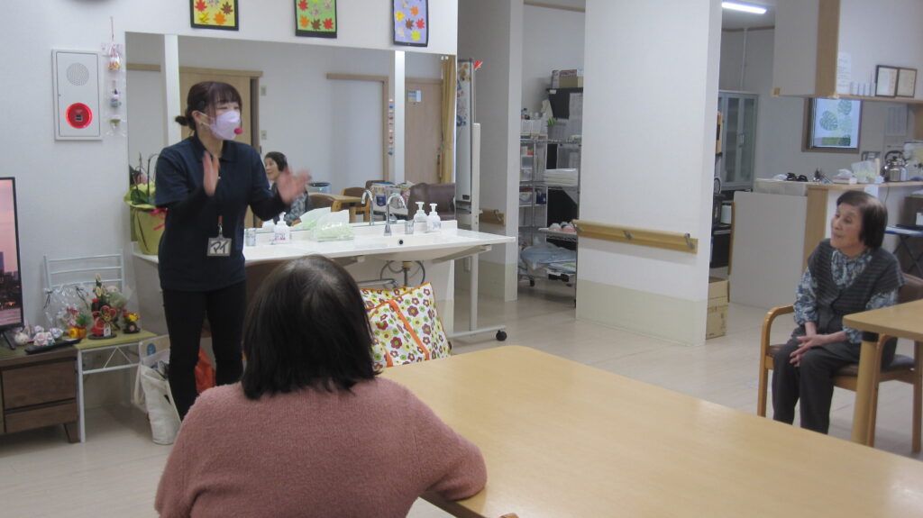 今回は、職員の方がレクリエーションをしに来てくださいました。