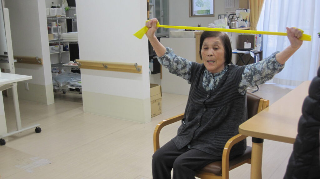 最後は、女学生に戻った気分を感じてもらいながら、「高校三年生」の歌に合わせて、体操をしました。