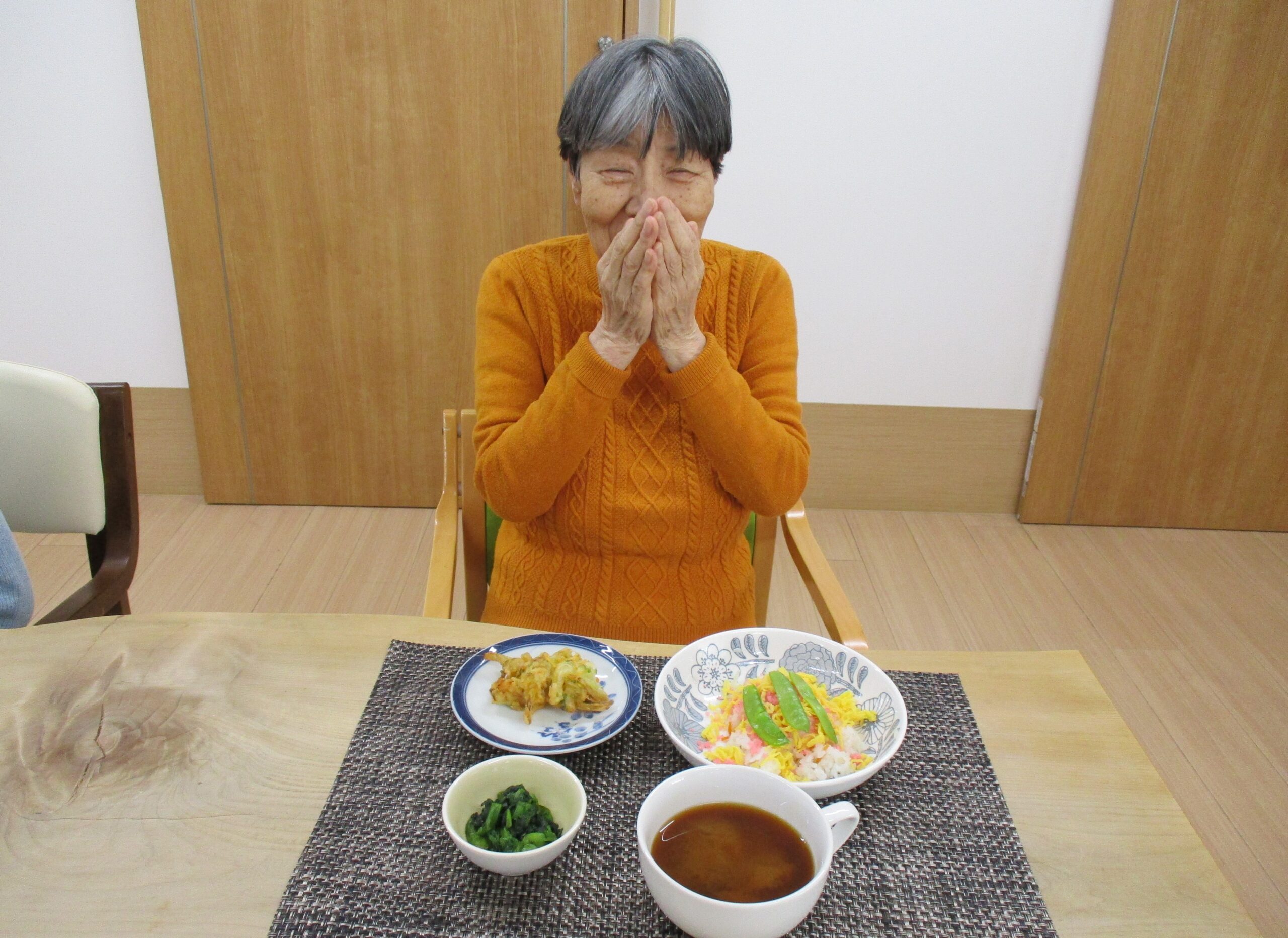 お昼はちらし寿司とかき揚げです✨